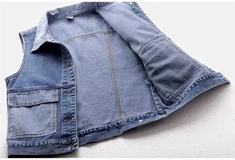 This best-selling vest delivers bold contrast and effortless style in one versatile layer. Crafted from a breathable cotton blend, it features structured shoulders, striped pocket panels, and a tailored collar for a fresh, utility-inspired finish. Whether worn over a tee or dress, it brings personality and polish with zero effort.