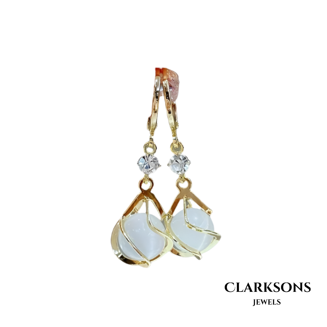 Violet | Gold Drop Earrings with White Opal